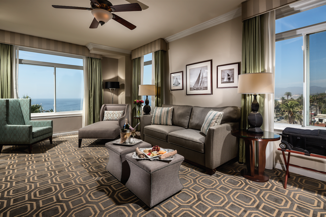 Each suite boasts elements of The Georgian’s iconic art deco motif with new modern details and a refined style that charms the present-day traveler while never losing the essence of the relaxed Santa Monica experience. While the rooms boast a new look, the spectacular ocean views that have been enticing guests for over 80 years remain unchanged. In the living room, a comfortable yet chic love seat disguises a hidden foam-mattress sleeper sofa and complements an elegant chaise lounge that together evoke a familiar sense of home. Enhancements to the bedrooms include custom-made, 300-thread count plush bedding along with light, oceanic toned lounge chairs with sleek geometric shapes and ornamentation. Dynamically-styled carpeting throughout the suite with bold patterns and neutral colors balance the space to bring together all that encompasses coastal luxury.
