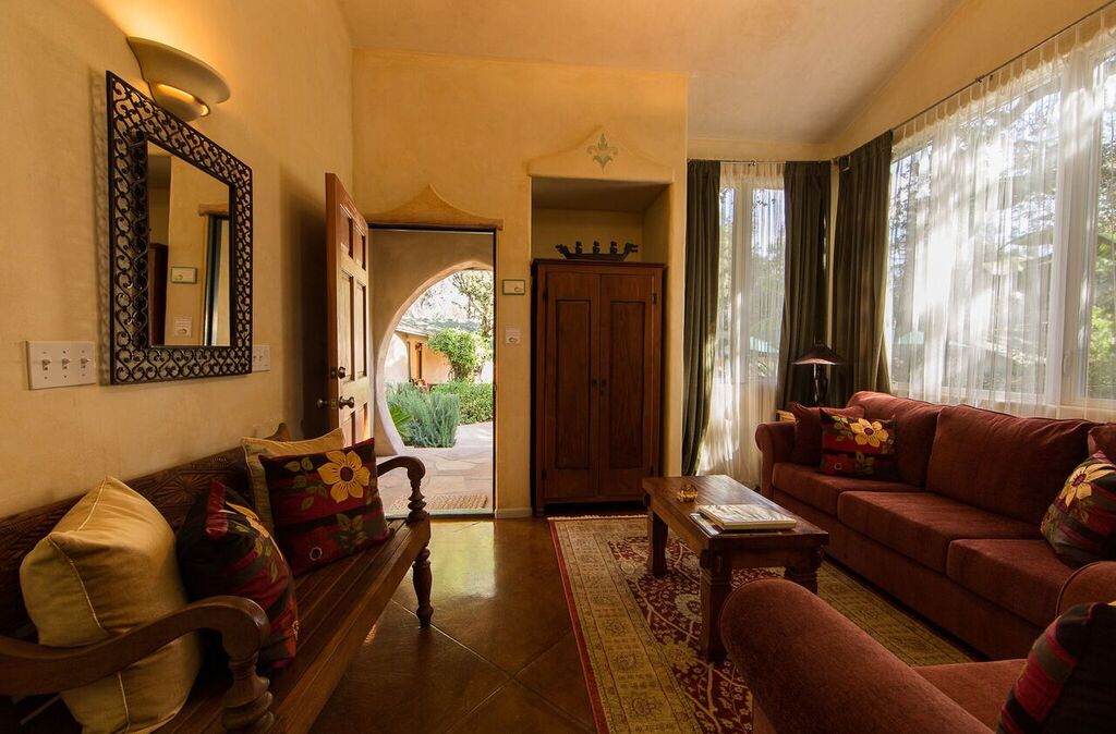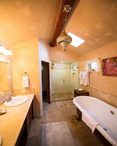 The Emerald Iguana offers accommodations unlike any other hotel. Just 13 rooms and suites in all, expect peaceful, artistic havens, filled with luxury amenities like plush bathrobes, hairdryers, coffee pots, complimentary wireless internet, and original artwork by Ojai artists, all of which are for sale. Owner Julia Whitman, obviously a woman of refined tastes, traveled to Europe and Asia to find the one-of-a kind pieces, rugs and exotic touches to create the inn’s exotic decor. Her husband, Marc, is the leading architect in the area, and can claim credit for enchanting craftsman/art nouveau-style architecture. Extensive stone and tile work are accented by dramatic archways, all influenced by Mr. Whitman’s fascination with Spanish surrealist Gaudí.