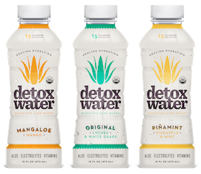 ACTIValoe is the most bioactive aloe water on the market today, loaded with aloe, electrolytes and vitamins. The ACTIValoe® in each bottle of Detox Water contains the power of aloe’s naturally-occurring polysaccharides, which are long chains of sugar molecules, clinically proven to support immune function, health digestion, nutrient absorption and youthful-looking skin (improvement in skin elasticity). Patented technology allows the makers to isolate the most effective polysaccharides within the plant and maintain batch-to-batch consistency of ACTIValoe® gel flakes in every bottle of Detox Water. Batch-to-batch consistency is the key to delivering optimal benefits at all times, including supporting digestive health, nutrient absorption, skin health and immune and antioxidant defense. Detox Water is your healthy healing hydration alternative that not only quenches thirst and tastes delicious, but also delivers the plethora of health benefits associated with drinking the most premium aloe in the world. This drink guarantees high retention of the many benefits of aloe vera. Only 15 calories, we love the Pinamint, a refreshing pineapple and mint.