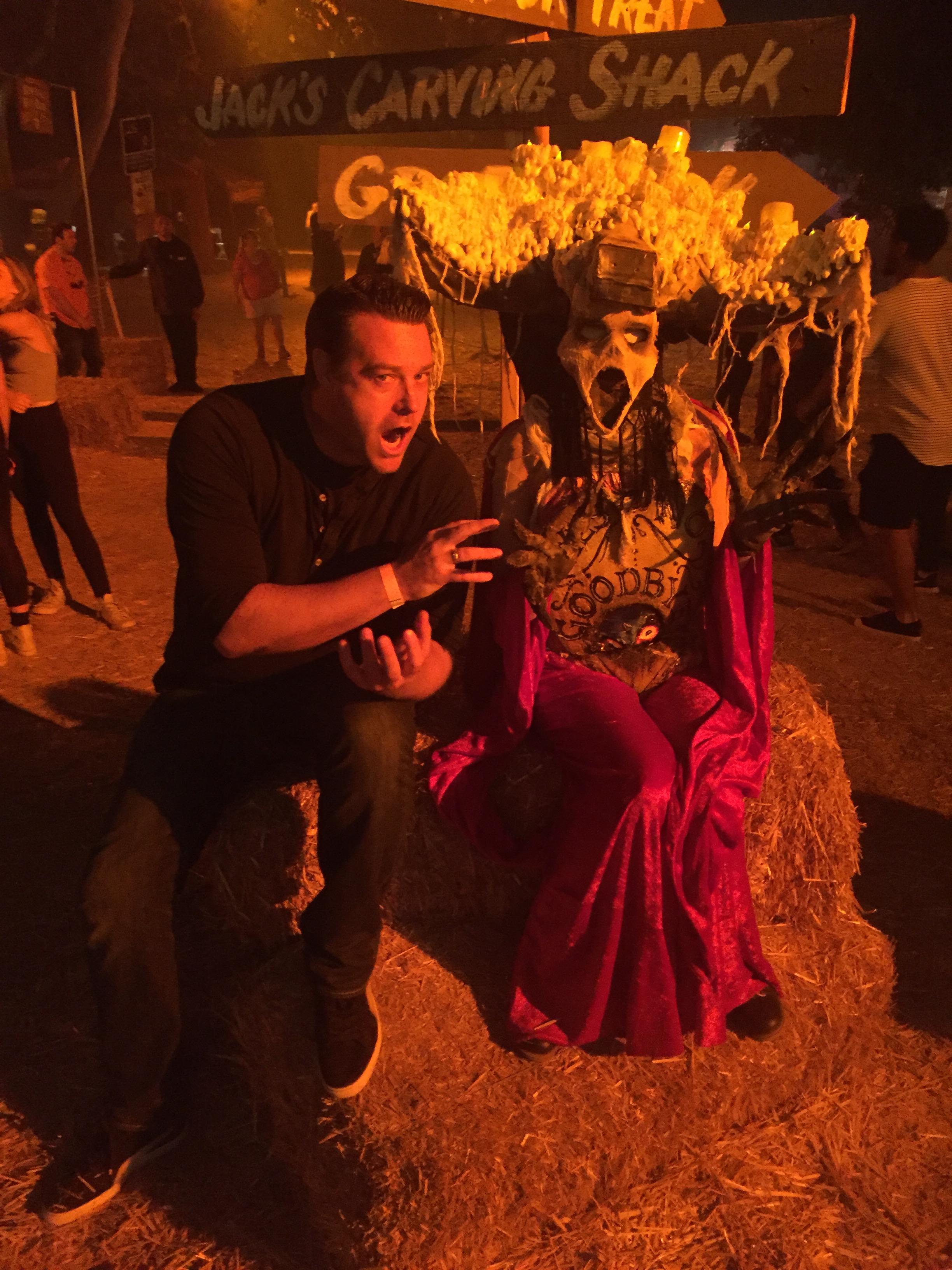 It’s Halloween every night at the innovative Los Angeles Haunted Hayride, need we say a “spooktacular” yearly event held in Griffith Park. We didn’t know witch way to turn at this interactive scare-fest so we jumped on the first hay wagon that came along and prepared to be frightened, scared and surprised by gory sights and sounds. It was all tons of fun but then we descended to a darker and more haunting depths with this year’s brand new and most imaginative theme to date, Secret Society. We were inducted into the Secret Society of Samhain, which actually means Halloween. This dark road of power and sacrifice takes place in the shadows and is a pretty graphic scene.