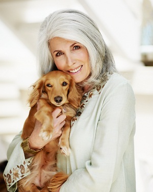Mrs. Beatrice Tollman with her golden dachshund Honey