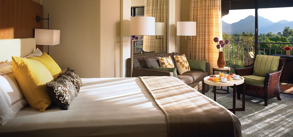 We found thoughtfully appointed accommodations on our recent visit. The Fairmont Scottsdale Princess offers 750 richly appointed guest rooms, including two Presidential Suites, 69 Fairmont Gold Rooms and 119 Casitas. All accommodations throughout the hotel have well-defined living and work areas, terraces, wet bars, refreshment centers and oversized luxury bathrooms. Enjoy these five star accommodations in Scottsdale with a soothing showcase of the subtle undertones, custom art pieces, louvered sliding doors, earthy accents and patterns of the Southwest.