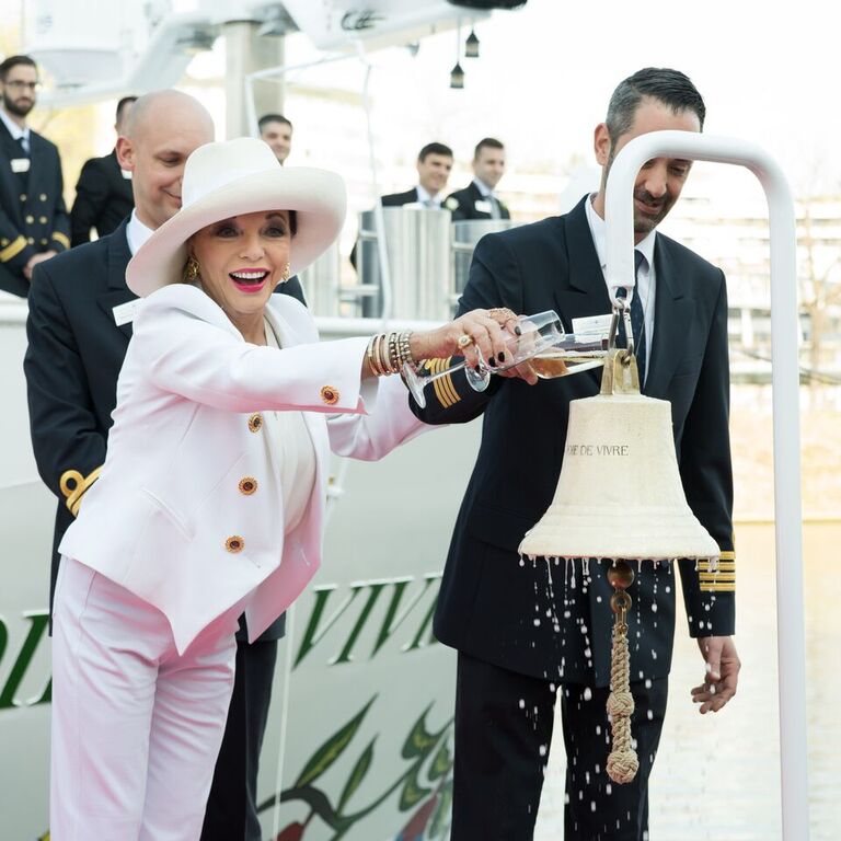Uniworld Boutique River Cruise Collection’s newest Super Ship, the S.S. Joie de Vivre, has set sail on its maiden voyage along the historic Seine River. The inaugural events included a christening ceremony in Paris led by the ship’s Godmother, Dame Joan Collins on Monday 27 March. Following the event, the S.S. Joie de Vivre embarked on its journey through Northern France along Uniworld’s Paris & Normandy itinerary, with unique programming in celebration of the highly anticipated launch.