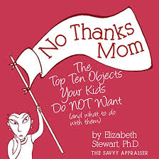 NO THANKS, MOM: The Top Ten Objects Your Kids Do NOT Want (and what to do with them), the latest book from the talented Dr. Elizabeth Stewart, aka The Savvy Appraiser. It’s an honest and humorous exploration of the generational differences in the households and possessions of Millennials/Gen-Xers and their Boomer parents. The central conflict is that most of the Boomers’ grown kids are refusing the family heirlooms that have been saved for them. This an experience we all must address. Stewart, a certified appraiser based in Santa Barbara, discusses the top 10 objects that younger generations do not want as “gifts” from the homes of their parents and grandparents. Stewart finds a consistent pattern of familial tensions over objects that older relatives have saved for the kids—wishing and hoping to pass on the beloved family treasures. If you’ve tried to pass on fine china, tableware, linens, fine porcelain figurines, silver-plated objects, ornate rugs, or heavy, dark furniture to a Millennial, you know it’s not so easy. Visit http://www.ElizabethAppraisals.com.