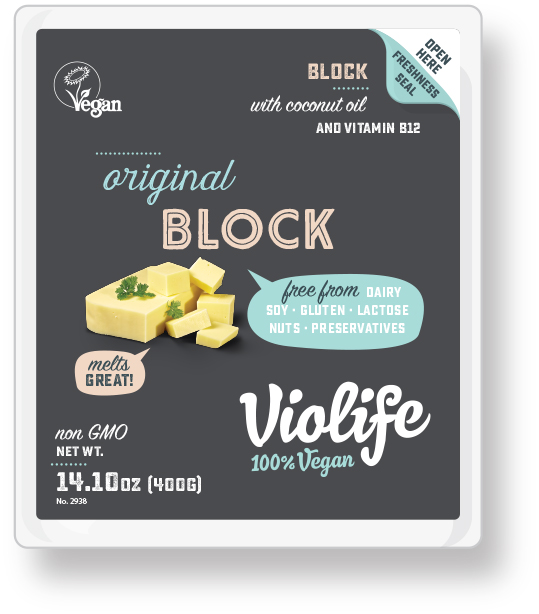 Award-winning Violife 100% vegan products in a variety of blocks and slices, such as