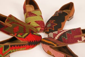 Their stylish shoes, travel bags and accessories are made to a very high standard in Turkey, with great care taken by them to provide fun colors and up-to-date styles. Sofas and chairs found in the UK are stripped back to their original wooden frame which is then treated and re-upholstered before the Kilim is put on. There is no point putting a precious rug on a piece of furniture which will not stand the test of time.