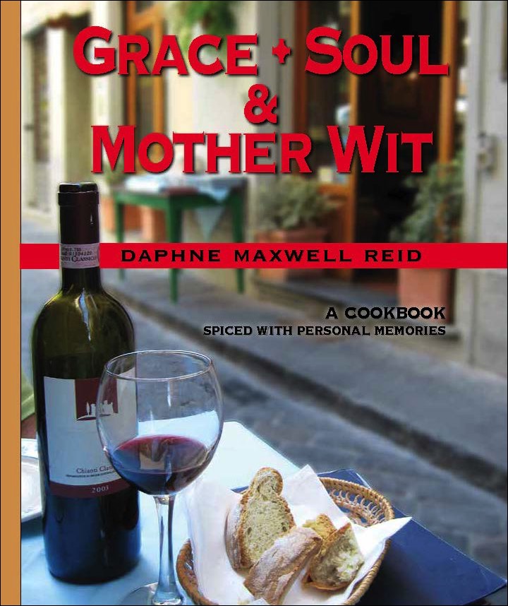 GRACE, SOUL AND MOTHER WIT is a mini-memoir dressed as a ring-bound cookbook by Daphne Maxwell Reid beginning with family photos of growing up in New York City, all through her travels around the world while working on and off of television, a cookbook that takes you through the basics of starting your own family memories centered around home cooked meals. Early chapters include setting up a kitchen, essential tools and supplies, basic cooking terms, how to set a formal table, and measurements & abbreviations. The recipes include sections for appetizers, soup, bread, poultry, seafood, red meat, side dishes, dessert, beverages and remedies. Daphne sells her books at DaphneCooks.com.