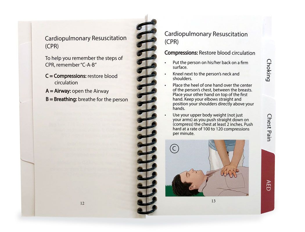 Easy to follow chapters focus on fainting, CPR AED, choking, chest pain, snake bites, shortness of breath, insect bites, trauma, head injury bleeding, strokes and seizures. We recommend you carry this durable, laminated, waterproof 4”x 6” resource in your golf bag, gym bag, backpack, purse or glove compartment so you can always be ready to respond in a proactive way when faced with a medical emergency. Stop trying to save par and learn how to save a life: every page of this 64-page book will strengthen your ability to cope with a medical emergency.