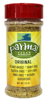 Parma! Vegan Parmesan, a plant-based, Keto, Gluten-free, Kosher, Soy-free Superfood. This delicious cheesy condiment is made from nutritional yeast, nuts, seeds and Himalayan crystal salt. No dairy at all. The people behind this–family-owned Sister River Foods–was founded with the belief that eating healthful and minimally processed foods is a major key to feeling our best. Their recipes are simple, nutritious and great tasting. Parma! Vegan Parmesan is made in small batches with great care, love and healing intentions are in every batch. Only the highest quality ingredients are used and certainly nothing you can’t pronounce. Choose from Original, Chipotle Cayenne, Better Than Bacon and Garlicky Green. eatparma.com