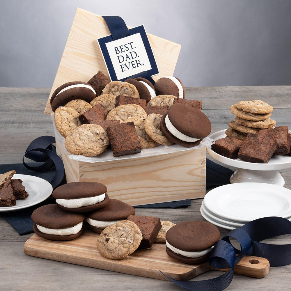 Father’s Day Baked Goods Sampler, $59.99, SKU 8951B — Nestled inside an attractive sliding lid crate are scrumptious cookies, decadent brownies, and original chocolate and vanilla whoopie pie. Dad’s sweet tooth is sure to be satisfied with this baked goods gift.