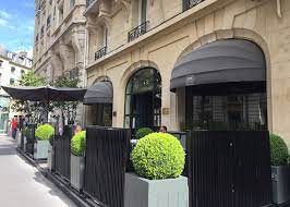 We have heard the hotel’s fine dining restaurant, soon to open again, is excellent for dinner with a menu that changes monthly. The Montalembert restaurant offers unique gourmet taste experiences based on the freshest of products to suit the appetite of the moment. The chef is creative with innovative subtle scents and flavors matched by an attractive cellar, a daring decor and a very Parisian atmosphere, favored by locals. For starters, are told the foie gras with fig confiture and a Caesar salad with smoked salmon are both parfait. So is shrimp coconut satay and supreme farm chicken au pot, tempting the chorizo cod fish with butternut puree and confit tomato sauce. They are perfectly prepared and crisply served. Next time we’ll order the Black Angus beef with chimichurrui sauce. Of course, we will have to do order the chocolate fondant, too. Glasses of wine are a reasonable 14 euros. Meals and drinks can be enjoyed on the terrace when the weather is salubrious. A cozy library with fireplace and small patio serves a delightful afternoon tea. Breakfast is served daily at Hotel Montalembert in the hotel’s breakfast room or in guests’ rooms upon request. Breakfast is an extravagant affair with freshly baked croissants and house-made jams of fig and framboise.