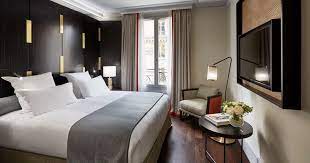 With a tucked away, discrete reception, the elegant Montalembert feels more like a private apartment building than a boutique hotel. It is polished and well-turned-out in a retro palette of navy and yellow, with beaucoup sleek wood and marble, and a few original features for that extra soupçon of charm. The hotel retains much of its Art Deco-era style. All 50 guest rooms were updated in 2017 with smart and chic decor, and some upper-level suites open to balconies with partial Eiffel Tower views. We especially like the updated, vintage cage lift.
