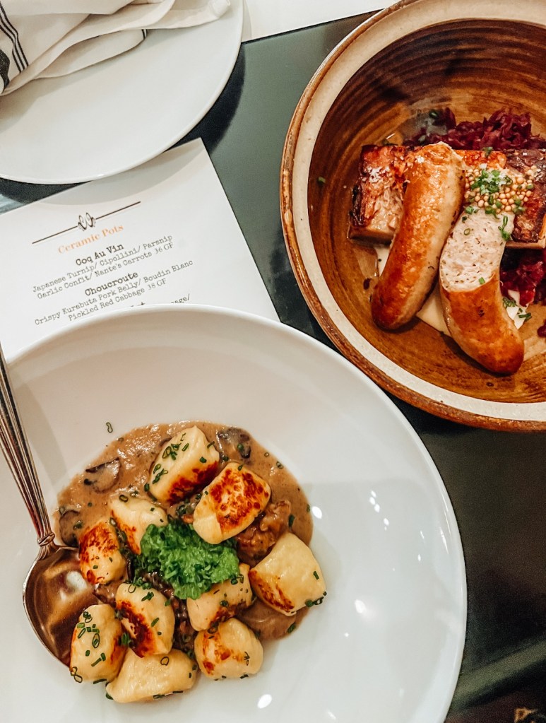 We were tempted by the “Ceramic Pots” on offer: coq au vin with Japanese turnips, cipollini, parsnip garlic confit and carrots, choucroute with crispy kurabuta pork belly, boudin blanc and picked red cabbage, and cassoulet—our cold weather favorite—with tender duck leg confit, merguez sausage and corona bean ragout. Who does cassoulet today? No one. It’s too much work. But Reimer makes it a scrumptious masterpiece effortlessly.
