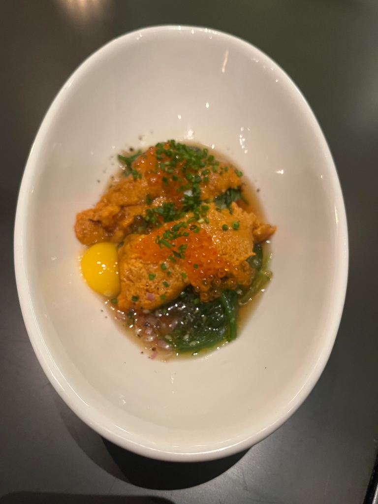 We can vouch for the dishes we were gracefully served: warm complex cauliflower soup in a mini-tea cup, unimpeachable olive oil poached tuna, translucent delicate crudo scallops, a rich uni bowl, hearty cavatelli with wild succulent mushrooms and a poached bass finessed with a light butter sauce.