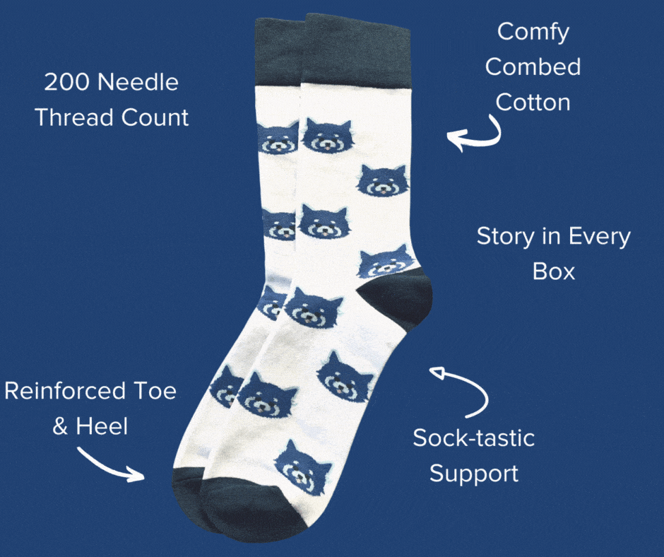 Lisa says, “They are one-size-fits-all, so no need to know someone’s size if you give the socks as a gift. It is a one-time transaction that will keep on giving monthly, for the amount of time you sign up for. However, we won’t be doing hearts in February; we will come up with something much more creative than that. We have a small group of trusted advisors that we run the designs by to ensure we are appealing to all age groups and gender identifications. We also listen to our customers and social followers and are incorporating their ideas for a great sock design.”
