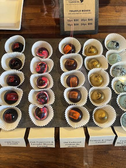 Chocolates among the very best chocolates and confections on planet Earth and urge you to try them. Twenty-Four Blackbirds Chocolates, 428 E Haley St., Santa Barbara, CA 93101, open Tuesday-Saturday 11 am-6 pm. (805) 464-6074,