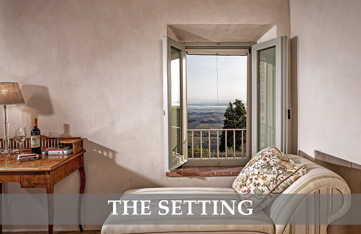 For wine lovers, Tuscan Women Cook is located in the Orcia DOC in the heart of Brunello de Montalcino and Vino Nobile di Montepulciano country, and border on the Chianti wine region. Guests stay in luxurious suites at I Castagni, perched cinematically above the magnificent Tuscan countryside. A gentle, fragrant breeze brings the heady scent of fresh lavender mingled with wild rosemary wafts into your room as you begin your day.