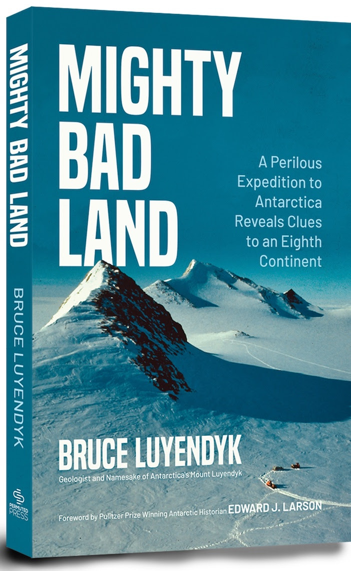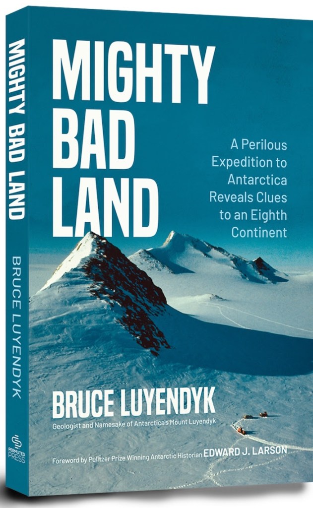 Polar explorer and scientist Bruce Luyendyk’s memoir MIGHTY BAD LAND, A Perilous Expedition to Antarctica Reveal Clues to an Eighth Continent covers his first expedition to Marie Byrd Land in Antarctica. Unlike other books about the continent, Luyendyk embeds readers with his team of six as they face the elements, make discoveries, and work 800 miles from the next outpost.