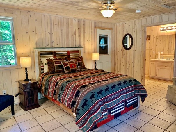 The compound consists of 3 connected cabins, each with a king or queen bed, en-suite private bath & shower, patio, WiFi, heating, fans, television with a library of DVDs, games and books.