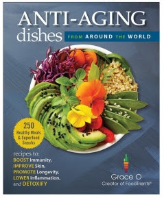 ANTI-AGING DISHES FROM AROUND THE WORLD by award-winning cookbook author, chef, and healthy-eating advocate Grace O has 250 recipes for healthy meals and super snack foods. The book was recently named national winner of the Gourmand Cookbook Awards in health and nutrition.
