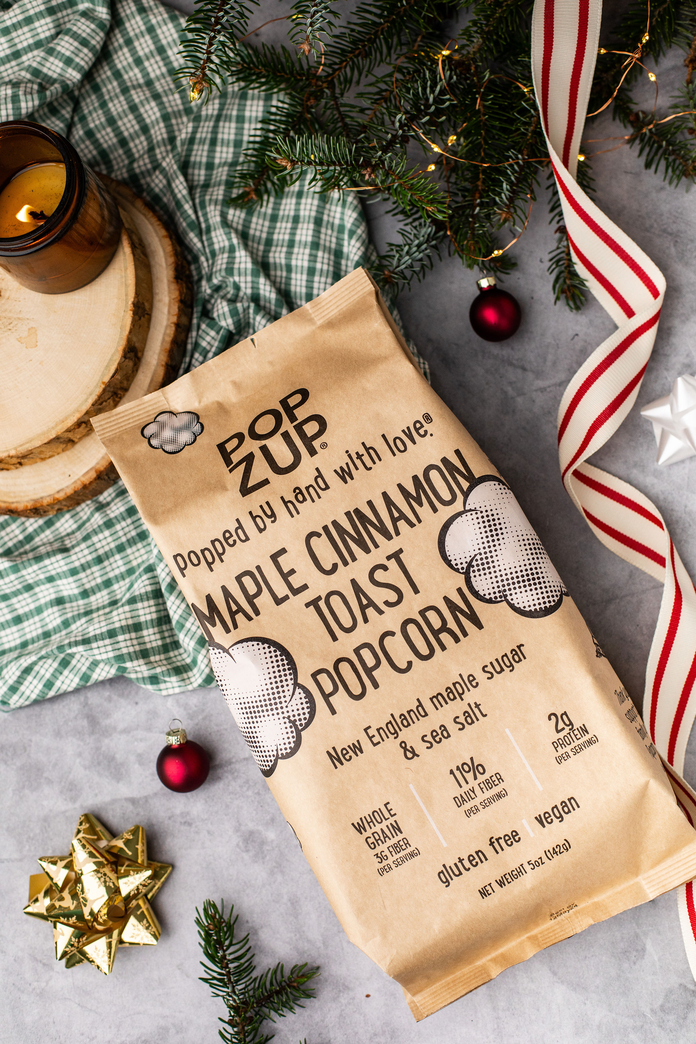 Popzup’s eight seasoning blends include Vermont Maple, Real Butter & Sea Salt, Veggie Cheesie, Applewood Smoked Maple, and more.