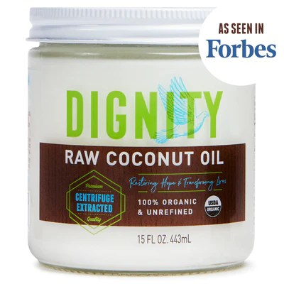 Raw pure coconut oil from Dignity, 100% organic and unrefined, packed with micronutrients with a mild taste for daily meals, smoothies and even for your hair and skin. $19.95 from http://www.dignitycoconuts.com