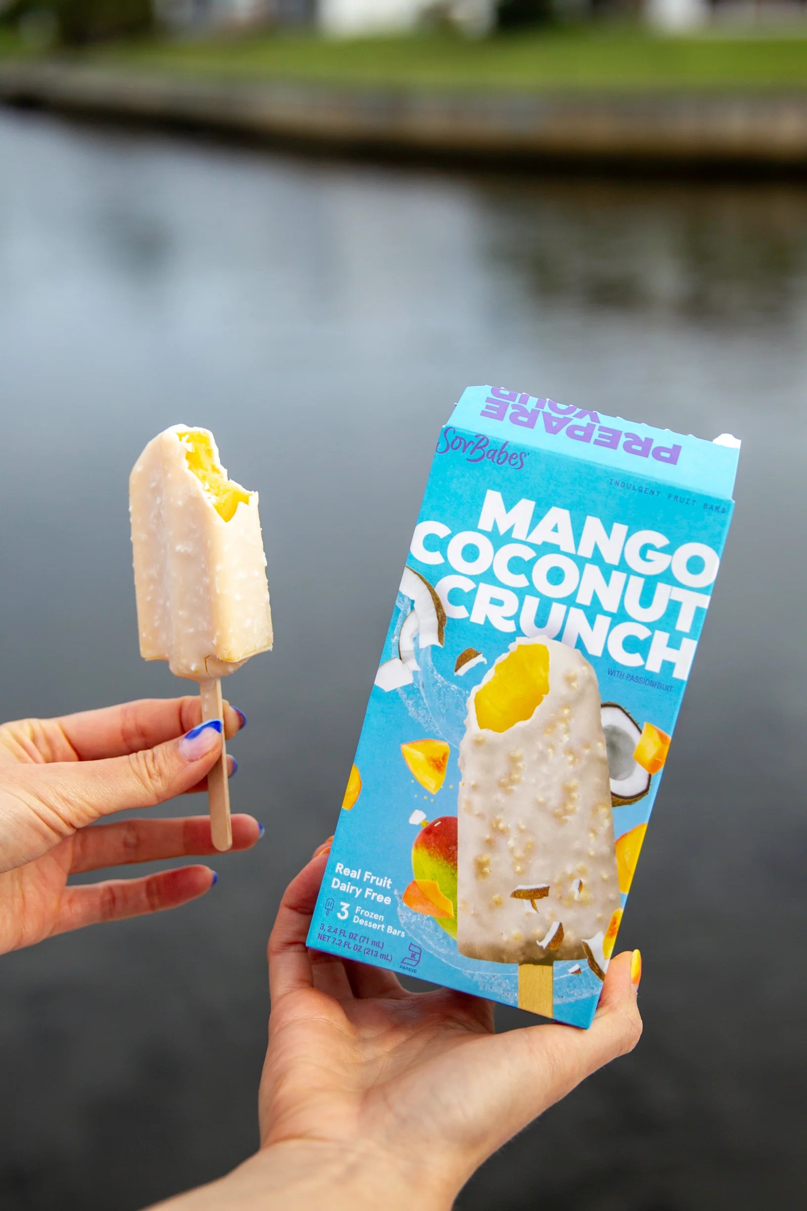 Cool off at home with creamy, soft-on-the-inside frozen fruit pops from Sorbabes. These pops are covered with a crunchy candy-like shell and come in yummy flavors like Mango Coconut Crunch, Strawberries & Cream, Berries & Cocoa Crisp and Banana Cream & Cookies! Made with plant-based ingredients that are vegan and dairy-free (only Banana Cream & Cookies have gluten). Available at stores nationwide and www.sorbabes.com.