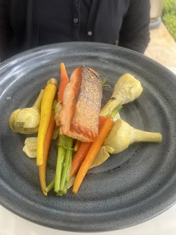 And delicious it was. Our chicken was tender and moist, The salmon perfectly cooked. The kitchen is not only innovative but they cook well with confident competence.