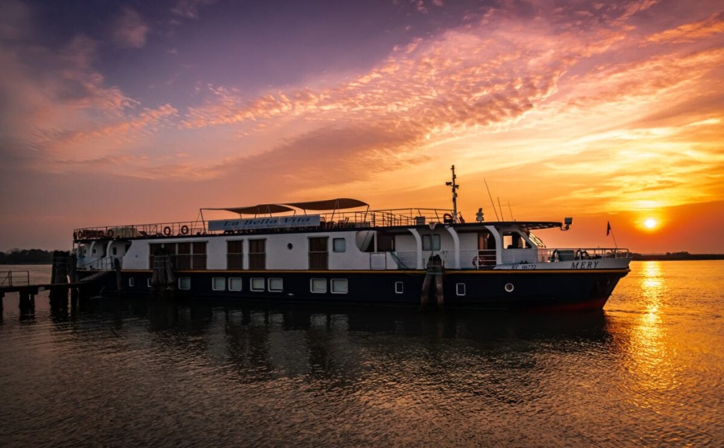 Bask in the beautiful life and enjoy nature’s bounty aboard this incredible barge: swirl, sip, and savor Italian wines from regional vineyards both onboard and ashore.