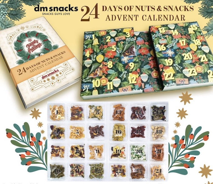 The 24 Days of Nuts & Snacks Advent Calendar from DM Snacks is a scrumptious journey through December with a variety of gourmet treats. Each day unveils a new snack, including salty roasted cashews, tamari almonds, a fruity seed mix, and a tropical fruit blend. Enjoy bold flavors with buffalo-style pumpkin seeds, BBQ almonds, and zesty ranch cashews (dairy-free). For an extra kick, dive into the spicy Asian crunch mix. Perfect for food lovers, this calendar transforms the holiday countdown into a daily indulgence of savory, sweet, and spicy delights, making each day a flavorful celebration. available for $49.99 on https://dmsnacks.com/ and Amazon.