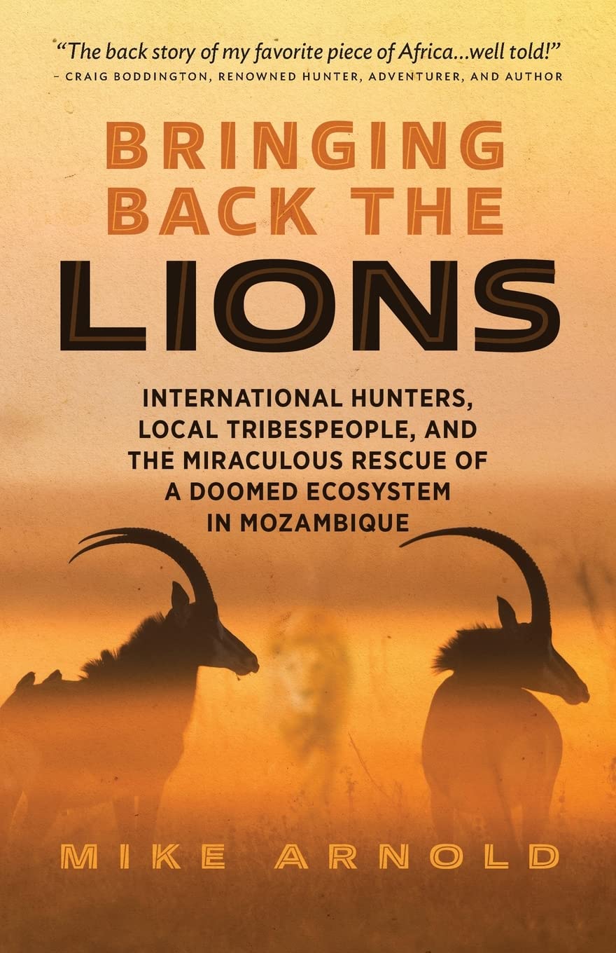 BRINGING BACK THE LIONS, International Hunters, Local Tribespeople, and the Miraculous Rescue of A Doomed Ecosystem, in Mozambique by Mike Arnold is a wonderful yarn, a historical novel and environmental odyssey that tells the story of the dream to set up camp on a vast African wasteland and return it to its former glory. This perilous and sometimes hilarious story takes readers to an uninhabitable place that through the efforts of Mike, his crew and local villagers make a dream come true. A small group of dedicated people CAN make a difference as this uplifting journey reveals.