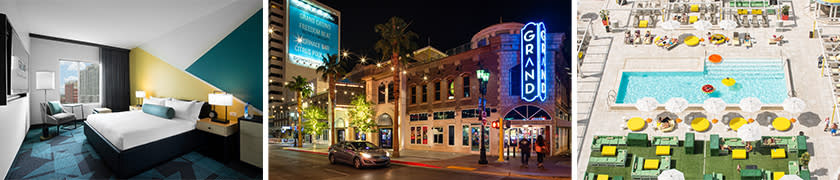 Our room was big and bright and immaculate, non-smoking of course. In-room amenities included a SNOOZ white noise machine, pillow top mattress with high thread-count linens, 2 bottles of water refreshed daily, complimentary WiFi, large screen HDTV, laptop safe and standard and USB power outlets. The H20 Therapy bath amenities were high quality. This hotel represents the modern side of Downtown Las Vegas with excitement for all visitors. Located just a minute walk away from Fremont Street, The Downtown Grand offers a quieter respite from the Las Vegas Strip just steps away from all the action, setting it apart from other downtown Las Vegas hotels. Above the Casino, we found the Citrus Grand Pool Deck, a poolside paradise with all the ideal amenities for good times overlooking the city’s skyline. Showcasing more than 35,000 square feet of space, the Citrus Grand Pool Deck features a sparkling swimming pool, shaded cabanas, outdoor daybeds and lawn games.